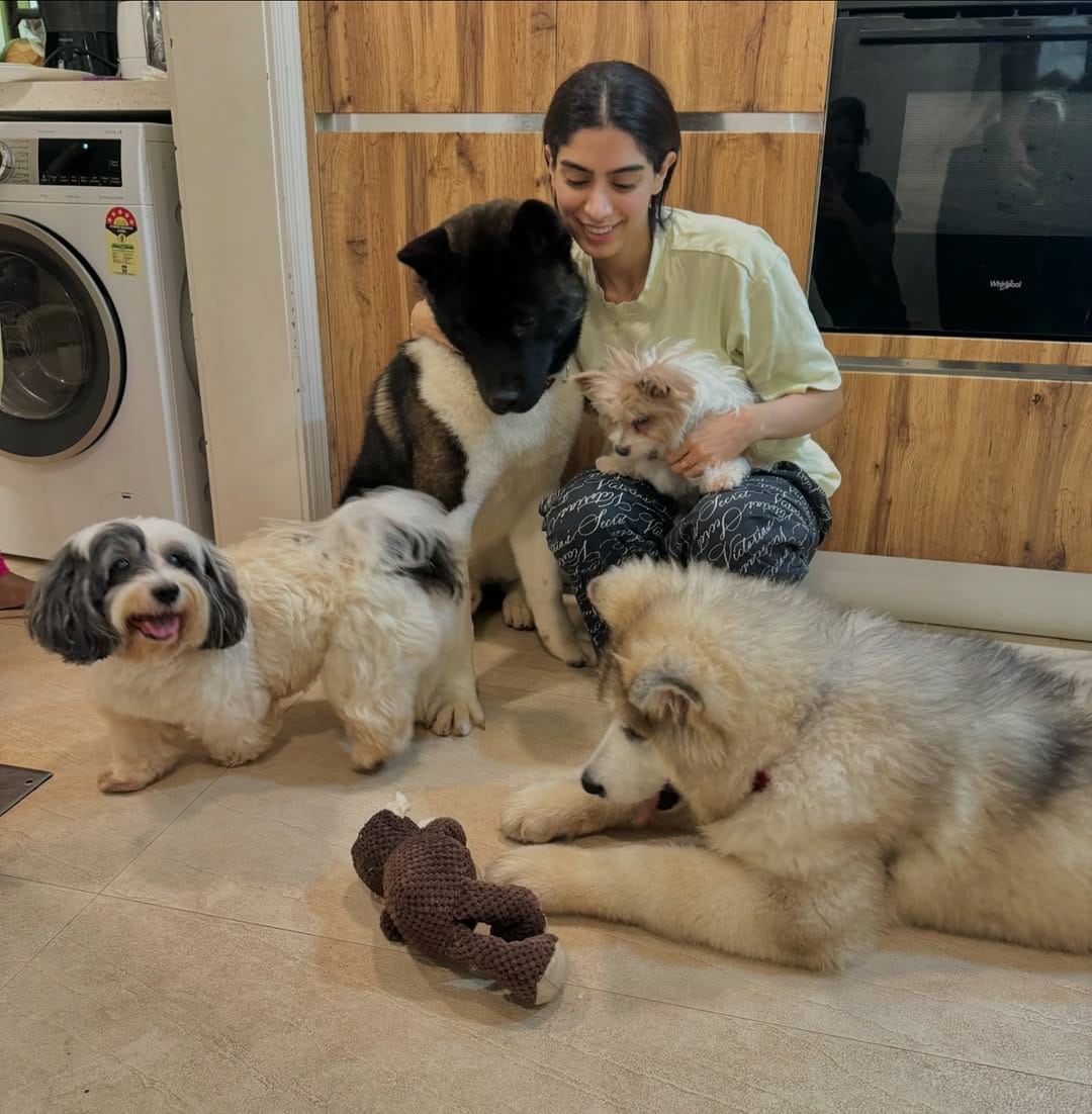 Not one, not two, but Khushi Kapoor is a proud parent to a trio of fur babies – Mochi, Panda, and Saitama